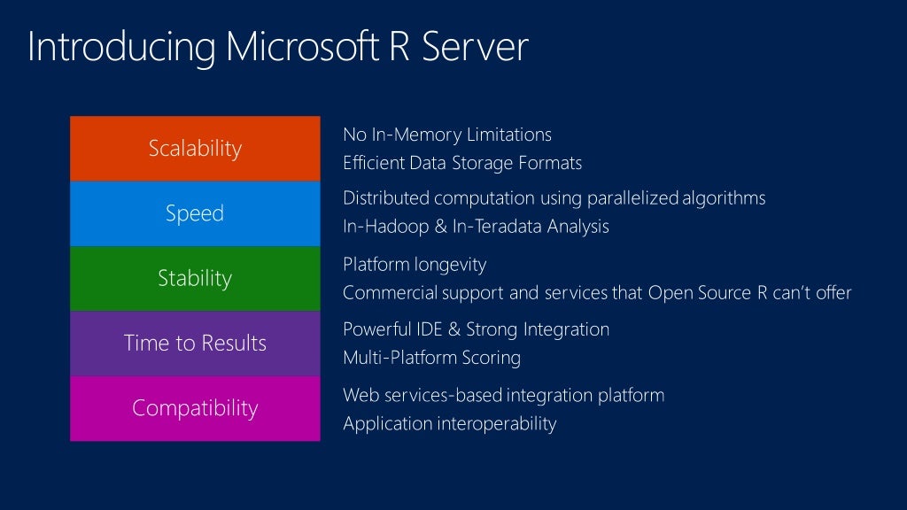 class: center, middle, inverse, title-slide # R in Power BI ## SQL Saturday #759 ### Taras Kaduk ### 2018/05/05 --- # Agenda - What is R - R inside Power BI - Why do you even need it? # Slides and stuff ## [https://github.com/taraskaduk/r-in-power-bi](https://github.com/taraskaduk/r-in-power-bi) --- # ~~What is love?~~ What is R? ## More importantly, what can it do? - data transform - stat analysis - machine learning / predictive modeling - web apps - reports, presentations - websites & books --- # What can R do? ## Data transformation ```r head(iris) ``` ``` ## Sepal.Length Sepal.Width Petal.Length Petal.Width Species ## 1 5.1 3.5 1.4 0.2 setosa ## 2 4.9 3.0 1.4 0.2 setosa ## 3 4.7 3.2 1.3 0.2 setosa ## 4 4.6 3.1 1.5 0.2 setosa ## 5 5.0 3.6 1.4 0.2 setosa ## 6 5.4 3.9 1.7 0.4 setosa ``` --- # What can R do? ## Data transformation ```r iris_gather <- iris %>% gather("key", "size", -Species) head(iris_gather) ``` ``` ## Species key size ## 1 setosa Sepal.Length 5.1 ## 2 setosa Sepal.Length 4.9 ## 3 setosa Sepal.Length 4.7 ## 4 setosa Sepal.Length 4.6 ## 5 setosa Sepal.Length 5.0 ## 6 setosa Sepal.Length 5.4 ``` --- # What can R do? ## Data transformation ```r iris_gather2 <- iris_gather %>% separate(col = key, into = c('part', 'dimension')) head(iris_gather2) ``` ``` ## Species part dimension size ## 1 setosa Sepal Length 5.1 ## 2 setosa Sepal Length 4.9 ## 3 setosa Sepal Length 4.7 ## 4 setosa Sepal Length 4.6 ## 5 setosa Sepal Length 5.0 ## 6 setosa Sepal Length 5.4 ``` --- # What can R do? ## Data transformation ```r iris_summary <- iris_gather2 %>% group_by(Species) %>% summarise(size_avg = mean(size), size_sd = sd(size), size_med = median(size)) head(iris_summary) ``` ``` ## # A tibble: 3 x 4 ## Species size_avg size_sd size_med ## <fct> <dbl> <dbl> <dbl> ## 1 setosa 2.54 1.85 2.10 ## 2 versicolor 3.57 1.76 3.30 ## 3 virginica 4.28 1.92 4.15 ``` --- ## **What can R do?** Data visualization  [https://taraskaduk.com/2018/01/10/mpaa-damon/](https://taraskaduk.com/2018/01/10/mpaa-damon/) --- # What can R do? ## Data visualization  [https://taraskaduk.com/2017/11/26/pixel-maps/](https://taraskaduk.com/2017/11/26/pixel-maps/) --- ### **What can R do?** Web apps (A.k.a Shiny) [https://taraskaduk.shinyapps.io/rate/](https://taraskaduk.shinyapps.io/rate/) <iframe width="800" height = "500" src="https://taraskaduk.shinyapps.io/rate/" frameborder="0"></iframe> --- ## What can R do? ### So much more! - reports - presentations (including this one!) - websites - books --- ## **What can R do?** Bread and butter > *"The best thing about R is that it was written by statisticians. The worst thing about R is that it was written by statisticians."* > **~ Bob Cowgill** (probably) <sup>1</sup> .footnote[ [1 - Why has R, despite quirks, been so successful? - Revolution Analytics](http://blog.revolutionanalytics.com/2015/06/why-has-r-been-so-successful.html) ] --- ## What can R do? ### Statistical analysis and Machine Learning - perform statistical analysis - create, train and test models on your laptop (`caret`, `modelr` packages, etc) - reach to Keras and TensorFlow from within R - et cetera et cetera --- ## R in Power BI ### R in Microsoft What can you do with R inside of MS products? - Run R on SQL Server. - Run R code in Azure ML - Use Microsoft R Server for paralel processing --- [https://microsoft.github.io/sql-ml-tutorials/R/rentalprediction/step/3.html](https://microsoft.github.io/sql-ml-tutorials/R/rentalprediction/step/3.html) ```sql -- Stored procedure that trains and generates an R model using the rental_data and a decision tree algorithm DROP PROCEDURE IF EXISTS generate_rental_rx_model; go CREATE PROCEDURE generate_rental_rx_model (@trained_model varbinary(max) OUTPUT) AS BEGIN EXECUTE sp_execute_external_script @language = N'R' , @script = N' require("RevoScaleR"); rental_train_data$Holiday = factor(rental_train_data$Holiday); rental_train_data$Snow = factor(rental_train_data$Snow); rental_train_data$WeekDay = factor(rental_train_data$WeekDay); #Create a dtree model and train it using the training data set model_dtree <- rxDTree(RentalCount ~ Month + Day + WeekDay + Snow + Holiday, data = rental_train_data); #Before saving the model to the DB table, we need to serialize it trained_model <- as.raw(serialize(model_dtree, connection=NULL));' , @input_data_1 = N'select "RentalCount", "Year", "Month", "Day", "WeekDay", "Snow", "Holiday" from dbo.rental_data where Year < 2015' , @input_data_1_name = N'rental_train_data' , @params = N'@trained_model varbinary(max) OUTPUT' , @trained_model = @trained_model OUTPUT; END; GO ``` --- class: center, middle  --- class: center, middle  --- class: center, middle  --- ## R in Power BI That's cool, but what can I do with R in Power BI? - custom R visuals - scripts - visuals --- class: middle, center # Custom R visuals ---  http://community.powerbi.com/t5/R-Script-Showcase/bd-p/RVisuals --- # Custom R visuals https://docs.microsoft.com/en-us/power-bi/desktop-r-powered-custom-visuals  --- # Custom R visuals  --- # Custom R Visuals [https://github.com/Microsoft/PowerBI-visuals-forcasting-exp](https://github.com/Microsoft/PowerBI-visuals-forcasting-exp) ```r ets_params = list(Automatic="Z",Multiplicative="M",Additive="A",None="N") if(frequency(timeSeries) == 1) seasonType = "None" deModel = paste(ets_params[[errorType]],ets_params[[trendType]],ets_params[[seasonType]],sep="") if(sum(deModel==c("ANM","ZMA","MMA","AZM","AMZ","AMM","AMA","AMN","AAM")))# Forbidden model combination deModel = "ZZZ" fit = ets(timeSeries, model=deModel,damped=damped) ``` --- # Custom R Visuals [https://github.com/Microsoft/PowerBI-visuals-forcasting-exp](https://github.com/Microsoft/PowerBI-visuals-forcasting-exp) ```r p1a <- p1a + labs (title = pbiInfo, caption = NULL) + theme_bw() p1a <- p1a + xlab(labTime) + ylab(labValue) p1a <- p1a + scale_x_continuous(breaks = seq(1,length(prediction$x) + length(prediction$mean)-1, length.out = numTicks), labels = x_with_forcast_formatted) p1a <- 